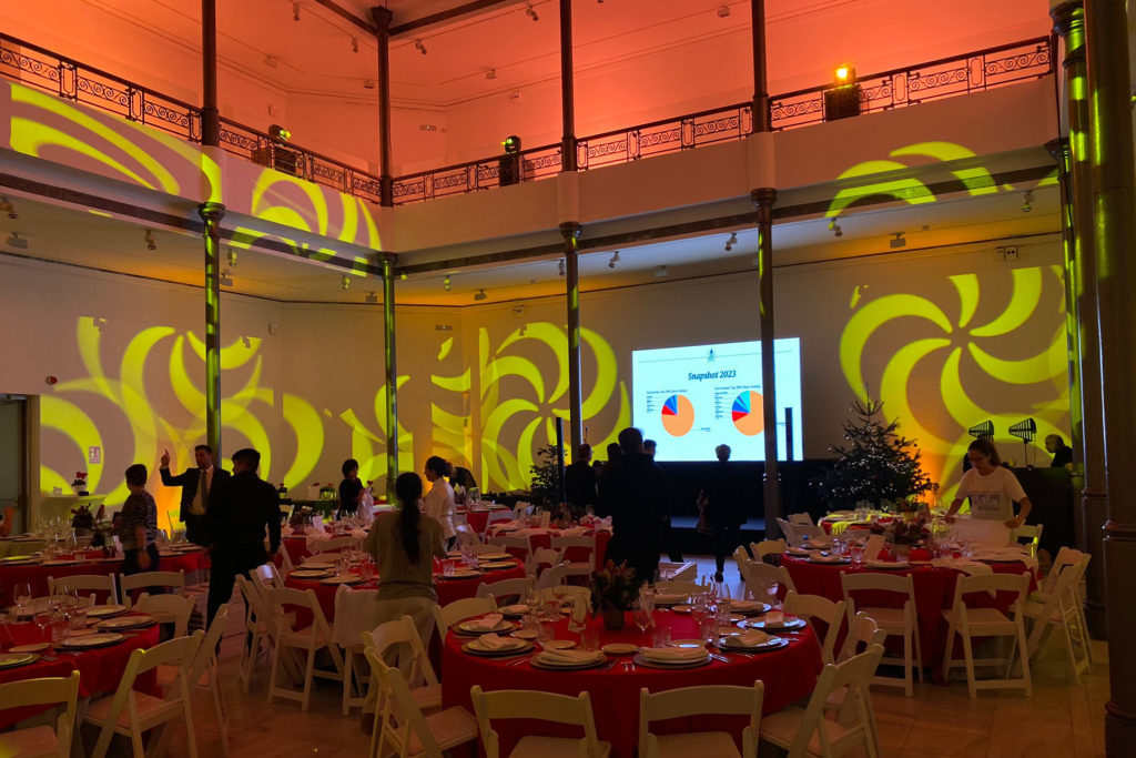 An example of the comprehensive service for celebration events proposed by Call & Play has been the intervention in the staging of the SONY MUSIC Christmas Dinner, which took place on December 15, 2023 at the Palacio Las Alhajas in Madrid.